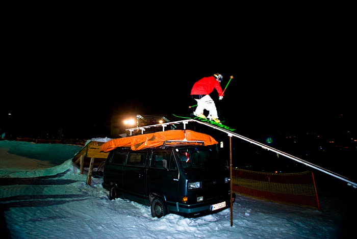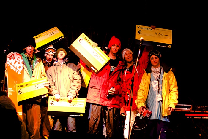 One highlight of the Jam 2008 was the kinked rail across the VW bus at the end section. Also the Gap grew a bit compared to the years before. Winning the contest, the riders Patrick Hollaus and Max Weickl showed the best riding performances on that night at the Buchebenwiese. After the contest a great musical performance by Cosmic Juice featuring Milli On Air delighted the audience in Bad Gastein.